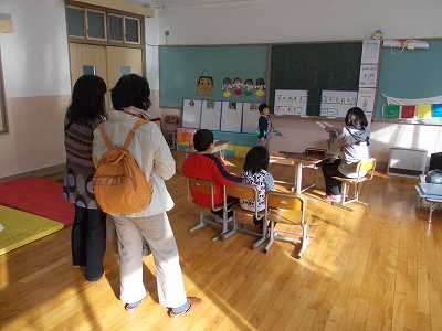 国語の学習を3教室に分かれて実施しました。保護者の方,左京南支部をはじめとする先生方に参観してしてだきました。