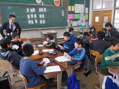 数学を選択した児童は,マイナスの意味を教えてもらって,トランプを使ってババ抜きの要領でカードを抜き合って得点を競いました。計算問題も,トランプを使ってみんなですると楽しそうでした。