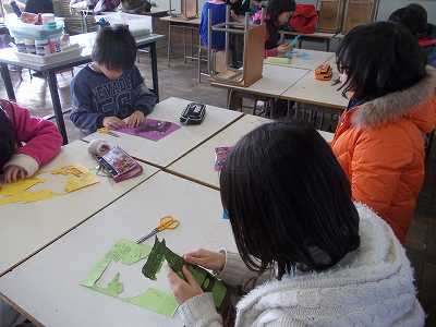 美術を選択した児童は,英語の解説がついたペーパークラフトに挑戦していました。英語の説明なので自信をもってどんどん進めることができません。よく見て・よく考えて進めることが狙いだったのでしょうか。