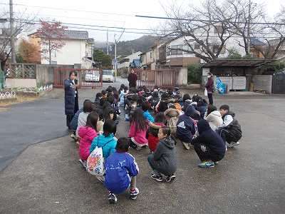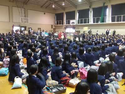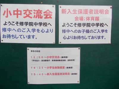 小中一貫教育・交流教育の一環で,修学院中学校に校下の4小学校の6年生が集合しました。修学院中学校は修学院第二小学校の校区内にあるので,いつものように給食を食べて徒歩で向かいました。遠い学校は,叡電やバスで来校します。