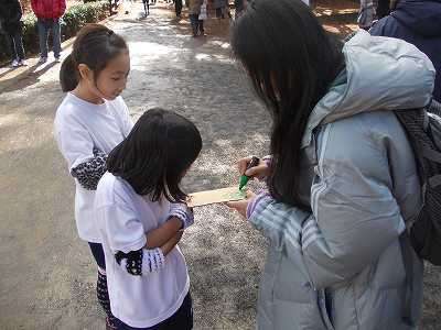 走り始めて1時間で終了の合図のピストルが聞こえてきました。ゴール地点まで戻ると最終周回のスタンプを押してもらえますが,子ども達のスピードがガクッと落ちました。