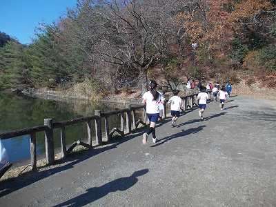 子ども達が走っている様子です。好天に恵まれて,たくさんの保護者の方々に見守られて走りました。