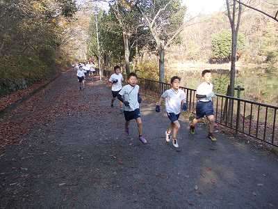 子ども達が走っている様子です。好天に恵まれて,たくさんの保護者の方々に見守られて走りました。