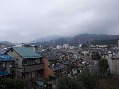 比叡山を眺めると,雪雲の中に隠れていました。山頂付近は吹雪かもしれません。