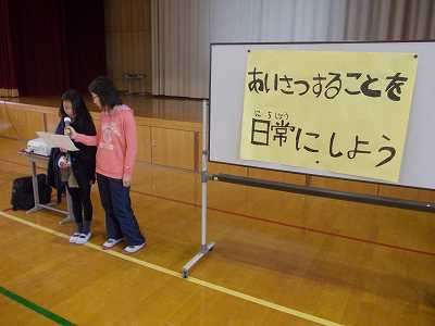 『ユニセフ募金』実施の予告について発表がありました。その後,『あいさつ強化』を訴える呼びかけもしました。