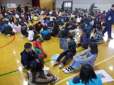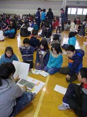 たてわりグループに分かれて6年生がブックフェスティバルを進めてくれました。発表者と聞き手は,選んだ本のよさについて感想を持って話し合いました。