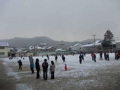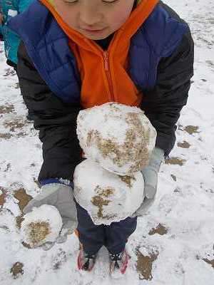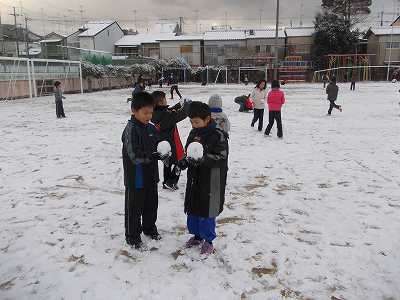 朝の運動場には元気な歓声がこだましていました。雪だるまを作ったり,雪合戦をしたり,雪を楽しんでいました。