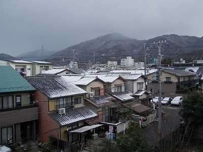 今日は下界も雪化粧しました。校舎の窓から見える比叡山もきれいでした。