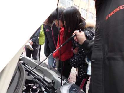 次に,江戸時代のエコ生活についてや,現代のタクシー会社のエコの工夫,そして,京都市の環境についての取り組みなどを学びました。また,ガソリン車,ハイブリッド車,電気自動車の違いを,実際の自動車を見せていただきながら,くわしく学習することができました。