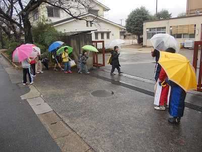 児童会の代表委員・計画委員の子ども達が,朝の校門で『あいさつ運動』をしてくれています。この日はあいにくの雨になりました。傘をさしながら,登校する児童に声かけをしてくれました。