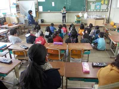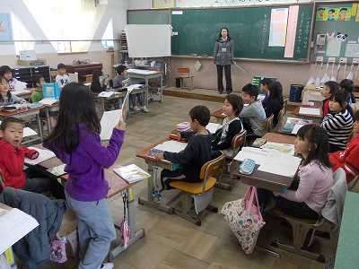 2年生は国語をしていました。修飾語を使った文を作って発表していました。