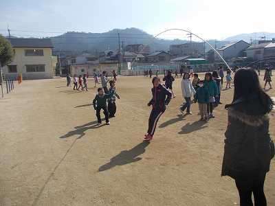 何回かたてわり遊びを実施していますので,運動場に集合する児童もあまり迷わなかったようです。大縄,ボールゲーム,おにごっこのゾーンを決めたいので,安全に遊べました。