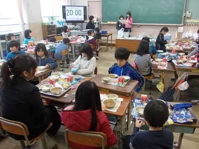 給食週間の時に「好きなデザートは何ですか? 全校アンケートで1位になったデザートを特別につけることにしました」ということで,アンケートを実施しました。第1位に輝いた『3色ゼリー』を2月18日に特別につけていただきました。