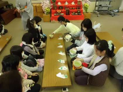 ひなまつりのつどいのために,修二茶道サークルの部員が,お抹茶の接待をしてくれました。
