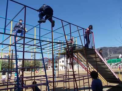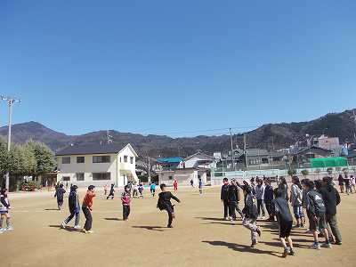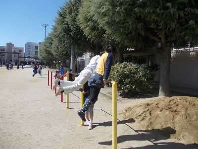 先週の暖かさと比べると,日曜日の雨を境に少し気温が下がりましたが,快晴で陽射しは春を感じさせてくれました。運動場で楽しく遊べました。