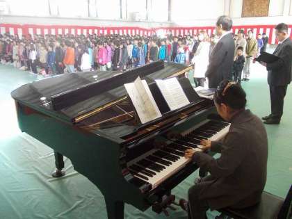 校歌を歌って着任される教職員をお迎えしました。