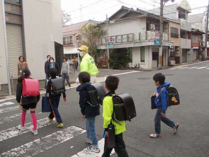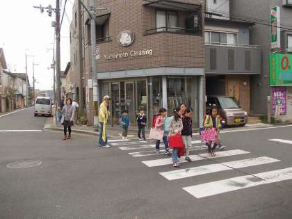 子ども達の安全な登校のために,修二交通安全会や修二子ども見守り隊の方々が交差点に立って下さっています。入学式・始業式の翌日とあって,保護者の方と一緒に登校してくる姿も見られました。