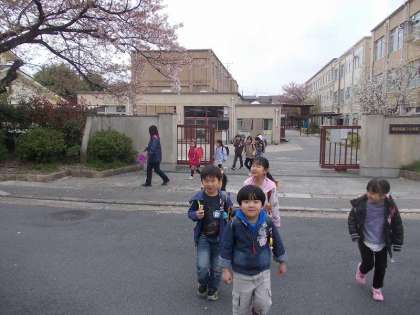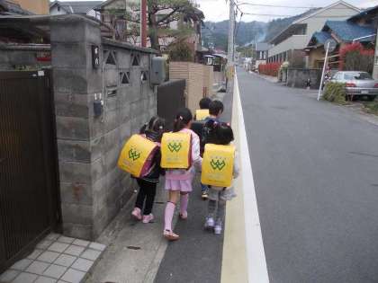 1年生は集団下校です。今日は,東門から帰るチームに付き添いました。東門が施錠されていましたので,児童館組は,校内から入れる門を開けてもらって児童館に帰っていきました。路側帯のカラー舗装をしていただいてので,線を意識して道路の端を安全に歩く事ができていました。