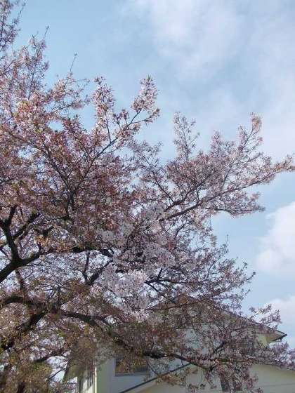 校内の桜の花の大半は盛りを過ぎてしまいましたが,注意して見ると枝先に桜の花が残っている枝があります。花見の最後のチャンスです。