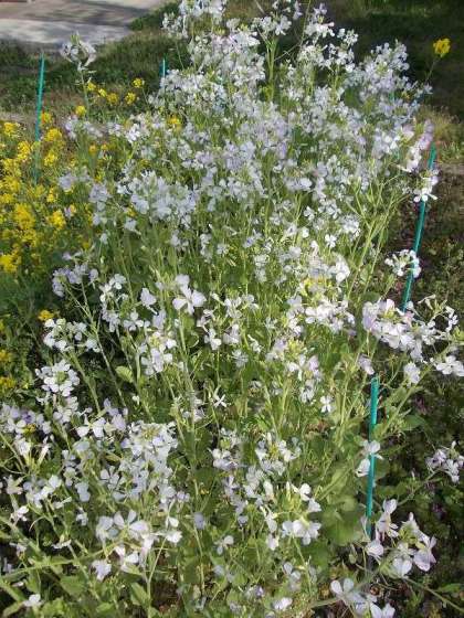 桜やチューリップだけでなく,校内には野菜の花も咲いています。白いのがカブ,黄色いのが菜の花です。