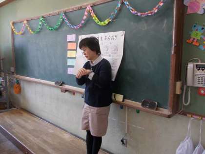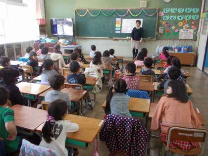 今日から給食が始まります。1年生は,栄養教諭の得丸先生から『手の洗い方』を教えていただきました。