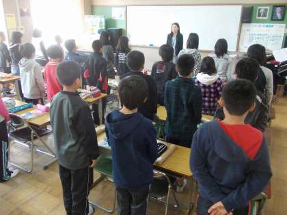 今年から6年生の音楽はSSの井上先生に教えていただきます。音楽室での初授業でした。どうぞよろしくお願いします。