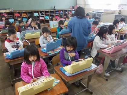 2年い組の前を通りかかると,鍵盤ハーモニカの音色が聞こえてきました。今年もたくさんの曲を練習してレパートリーを増やしましょう。