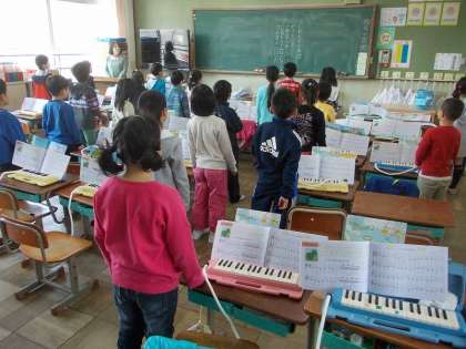 2年ろ組の前を通りかかると,元気な歌声が聞こえてきました。学級の歌が完成したので,みんなで歌っているとのことでした。