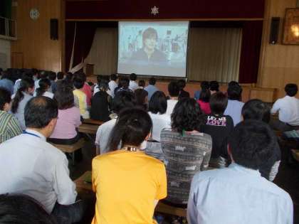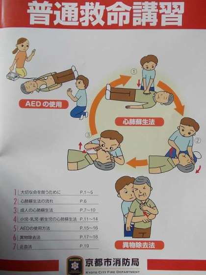 プールの季節を前に,左南支部では左京消防署のご協力を得て,毎年救急救命講習会を受講しています。この日は,養正小学校での理論研修会に参加しました。