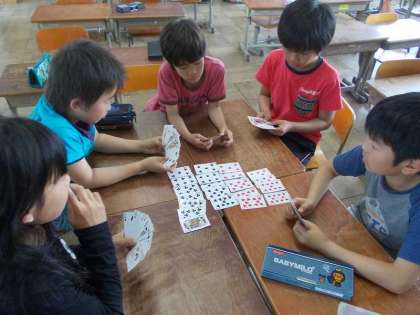 初回のこの日は,トランプ,将棋,ウノに分かれて楽しみました。4年生にとっては,クラブに参加して高学年気分でした。