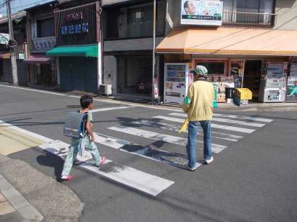 今日は6年生の修学旅行です。6年生は,7時半頃から登校し始めましたので,通常の登校時間帯は小さな子ども達が目立ちました。今日も,交差点で見守っていただいています。