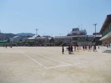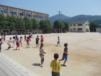 快晴の中間休みです。運動場にラインを引いたので,子ども達は上手にラインを避けて遊んでいました。