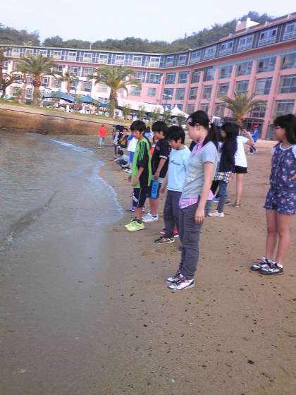 体操の後の浜辺での散歩も,京都では味わえない体験で,修学旅行に来ていることを実感させてくれました。
