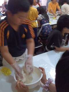 最後に,女々しくて などの曲にあわせてうどんを踏みました。