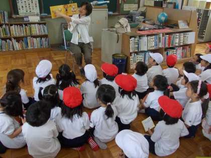 毎週木曜日の中間休みに,PTAの図書ボランティアの皆様のご協力で,読み聞かせをしていただいています。毎回季節に合った本を探して読んでくださるので,子ども達と同じように教員の方も楽しみにしています。