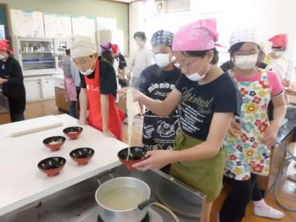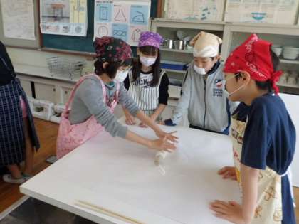 班で協力して,生地をのばしたり,切ったり,ゆでたりしました。