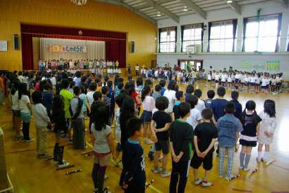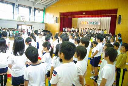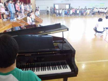 晴れて修二校の児童会の一員となり,初めての全校合唱をしました。
