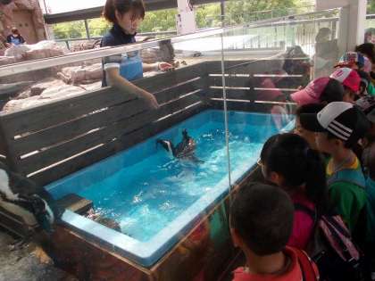 他のお客様もたくさんおられたので,担任の先生に引率してもらってまず順路に従って全員で見学しました。