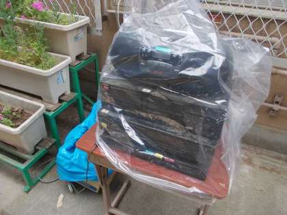 「雨よ降らないで〜」と,祈るような気持ちでライン引きと,ビニール袋をかぶせた放送設備のセッティングをしました。