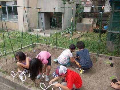ツルレイシを植えるために花壇を整備してきました。運動会も終わり,やっと落ち着いて定植できます。