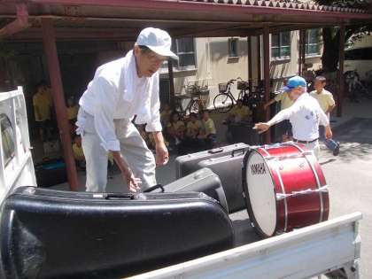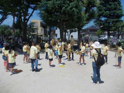 6月29日(土)に,『第9回 修二ふれあい あじさい祭り』が,辻公園を会場に開催されました。今年も依頼演奏に招待されたドリームバンドは,朝から集まって準備をしました。