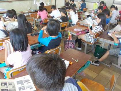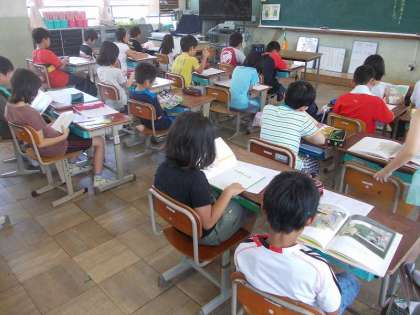 読書週間明けの全校朝読書の様子です。4年生の教室で撮影しました。