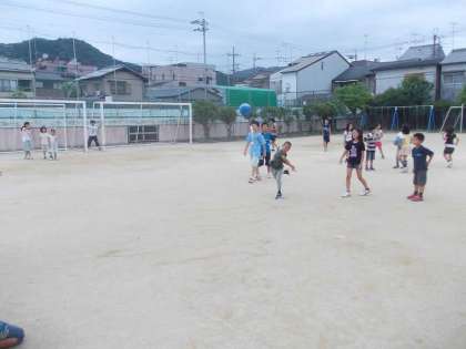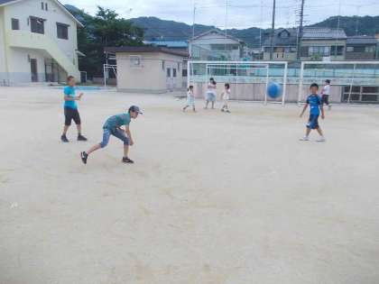 このグループはドッジボールでした。高学年はちゃんと手加減してくれました。