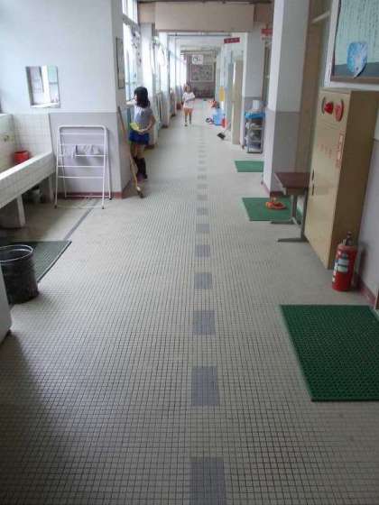 修二小の廊下は下履きで移動していますが,いつもていねいな掃除が行き届いていてピカピカです。来校者の方の中には,2足制の廊下と勘違いして入口で靴を脱がれる方もおられるほどです。廊下の掲示板には,今月の修二っ子コツコツ目標の掲示もあります。