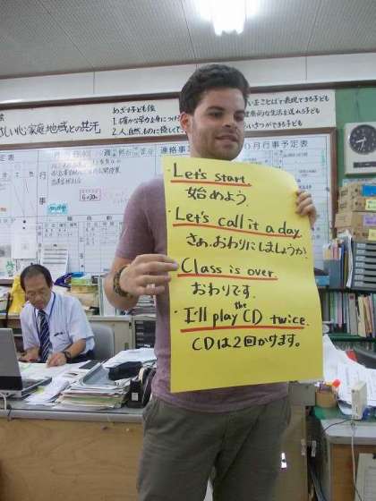 ALTのタイ・ジョナサン先生が来校して指導してくださる日は,朝の職員打合せの時間に,すぐに使える教室英語を紹介していただいています。