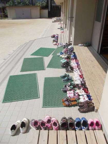 梅雨明けした外は,朝から太陽が一杯です。今日も朝から暑い日になっています。下靴は,すのこに沿って今日もきれいに並んでいます。とても気持ちの良いものです。