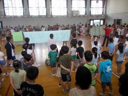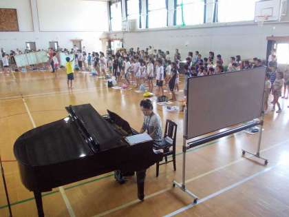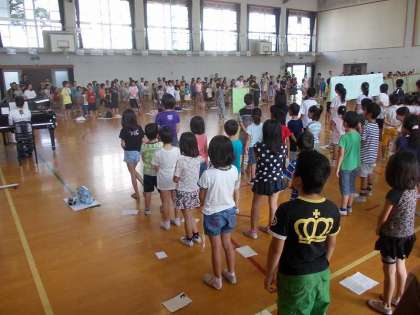 井上先生に教えてもらったことを活かして,全校で『ぼくらのふるさと一乗寺』を歌いました。いつもよりきれいな声で歌えていました。