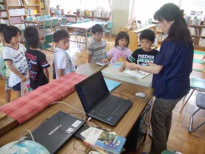 毎週水曜日には図書館支援員の徳田先生がいらっしゃるので,どの時間帯に子どもだけで図書室に行っても,返却・貸出をしていただけます。