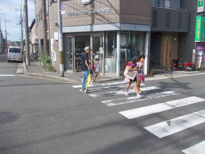 いつも見守っていただいています。点滅信号なので,徐行や一旦停止が徹底せず,とても危ない交差点です。