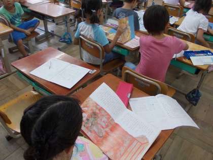 全校朝読書の時間に,静かに読書をしていました。読書ノートに記録している子どももいます。